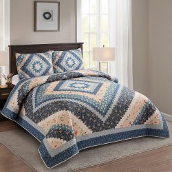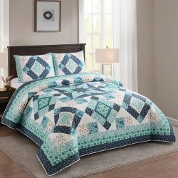 Diamond Bear Printed Quilt Set - Materials: 100% polyester face and microfiber back, 50% cotton 50% polyester fill. (King Size 105x95 includes 2 King Shams 21x37) (Queen Size 90x90 includes 2 Standard Shams 20x26) (Twin Size 68x86 includes 1 Standard Sham 20x26)